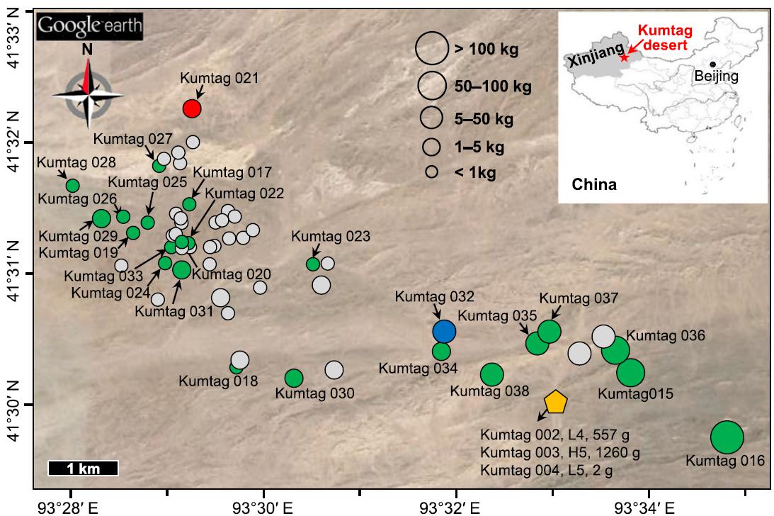 Kumtag 016 散落带陨石野外照片(Zeng et al. 2018)